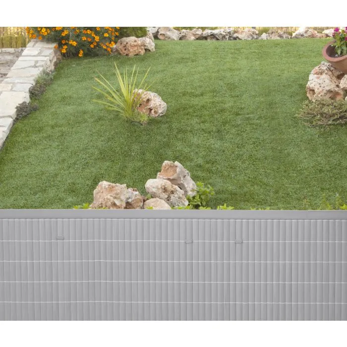 Cane fencing PVC double sided grey 2x3m. These privacy screens are ideal for homes and gardens as well as for commercial applications such as tennis courts. They are made of durable, weather resistant UV-stabilized PVC and are reusable, washable, waterproofProduct attributes