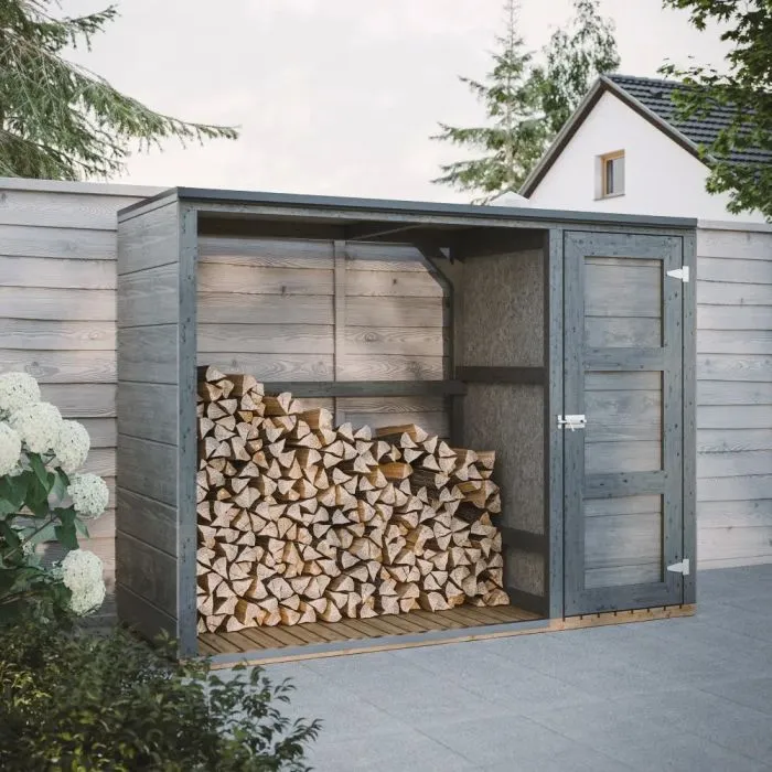 With the firewood storage shed 75x217x159cm, you create an organized and dry storage place for your firewood. Combine the shed with high-quality kiln-dried firewood for immediate use with your fireplace or fire pit.