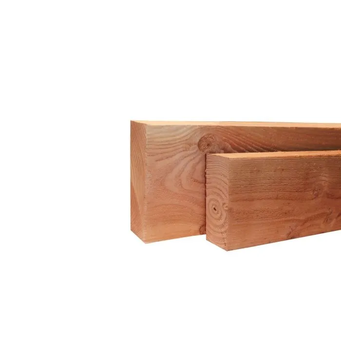 Wooden fence finials Douglas untreated. 4.5x12x400cm. Suitable for our wood/concrete Douglas system with continuous rebate. This product is recommended as extra reinforcement of this wood/concrete construction.Product attributes